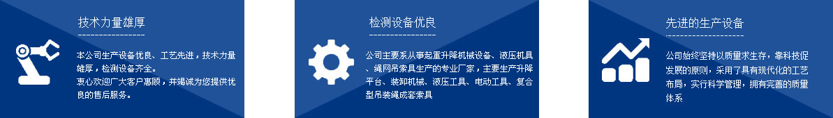 泰州市如意機(jī)械設(shè)備有限公司,座落在中國海軍誕生地江蘇泰州市,緊連328國道,東有鐵路相連,同時(shí)有滬寧、寧通高速公路相交,地理位置十分優(yōu)越,自然環(huán)境得天獨(dú)厚。 本公司系從事起重升降機(jī)械設(shè)備、液壓機(jī)具、繩網(wǎng)吊索具生產(chǎn)的專業(yè)廠家,主要生產(chǎn)千斤頂、液壓拉馬、軸承加熱器、升降平臺、裝卸機(jī)械、液壓工具、電動工具、復(fù)合型吊裝繩成套索具、高強(qiáng)纖維柔性吊裝帶、起重鏈條成套索具、橫梁吊具、注塑繩、軟梯、安全帶、安全網(wǎng)等幾大系列、上百種規(guī)格的產(chǎn)品,廣泛應(yīng)用于電力、油田、大型鋼廠、機(jī)電、化工、航空、冶金、機(jī)械、鐵道、造紙、港口、建筑等領(lǐng)域。 本公司生產(chǎn)設(shè)備優(yōu)良、工藝先進(jìn),技術(shù)力量雄厚,檢測設(shè)備齊全,其中升降平臺、千斤頂、吊具、加力扳手、液壓矩扳手經(jīng)泰州質(zhì)量技術(shù)監(jiān)督局監(jiān)督檢驗(yàn) ...[點(diǎn)擊詳情]